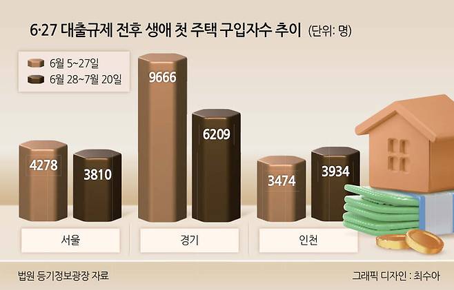 '6·27 대출규제' 이후 수도권 생애 첫 주택 구입자수가 시행 전에 비해 약 20% 감소한 것으로 나타났다.