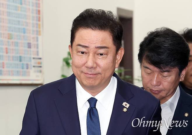 | ▲ 김병기 더불어민주당 당대표 직무대행 겸 원내대표가 22일 서울 여의도 국회에서 열린 원내대책회의에 참석하고 있다. |