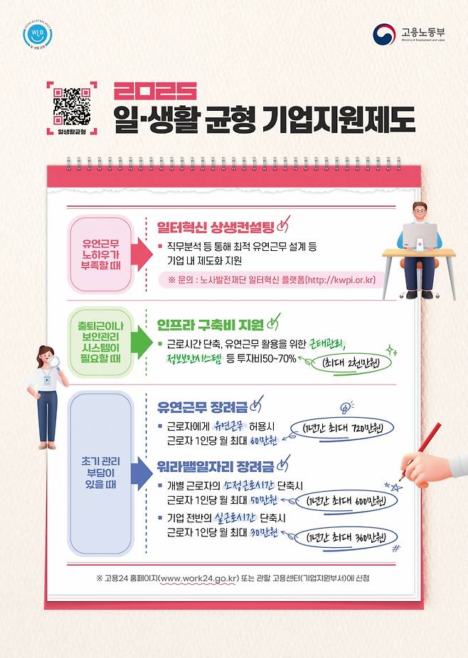 선택근무제나 재택·원격근무를 활용할 경우, 근로자 1인당 최대 월 40만원이던 장려금은 월 60만원으로 올랐다. 시차출퇴근제는 월 20만원에서 40만원으로 두 배 상향됐다. 장려금은 최대 1년간 지원된다.