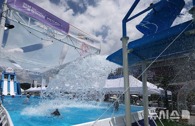 [서울=뉴시스] 배훈식 기자 = 절기상 가장 덥다는 대서(大暑)인 22일 오후 서울 종로구 광화문광장에서 열린 2025 서울썸머비치를 찾은 아이들이 물놀이를 하며 더위를 이겨내고 있다. 2025.07.22. dahora83@newsis.com
