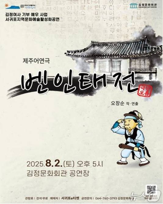 제주 서귀포시는 제주어 연극 '벤인태전'을 오는 8월 2일 오후 5시 김정문화회관 공연장에서 개최한다.