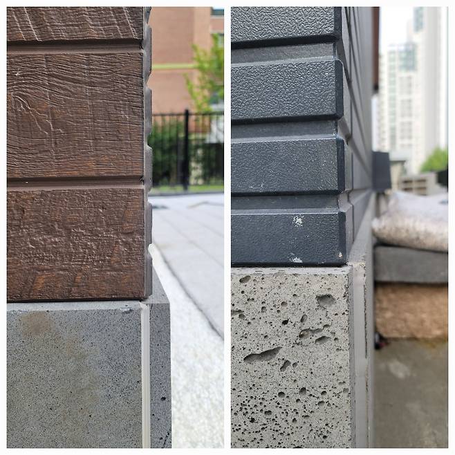 | ▲ 전용 클립에 끼워 시공하는 세라믹 사이딩과 코너재 |