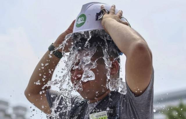 | ▲ 지난해 8월 2일 서울 용산 대통령 집무실 앞에서 열린 '건설노조 폭염 기자회견'에서 민주노총 건설노조 관계자가 폭염시 작업 중지를 촉구하며 얼음물을 머리에 붓고 있다. |