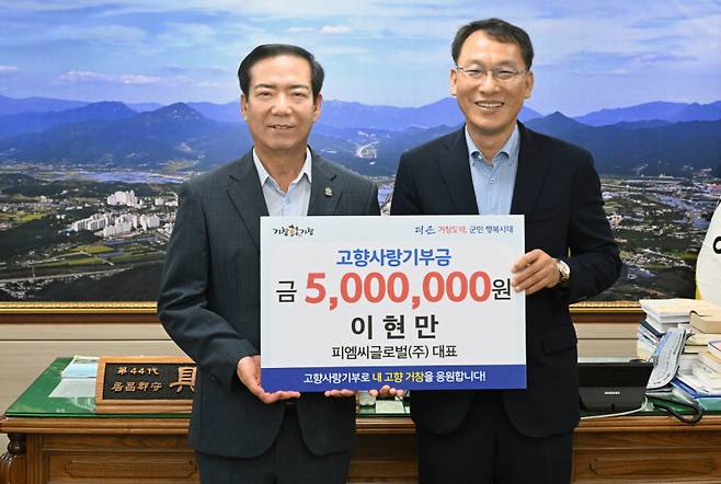 피엠씨글로벌(주) 이현만 대표가 고향사랑기부금 500만원을 기부했다.
