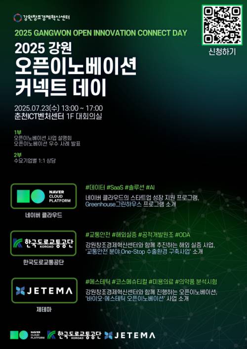 강원창조경제혁신센터(대표이사:이해정)는 23일 춘천ICT벤처센터 대회의실에서 ‘2025 강원 오픈이노베이션 커넥트 데이’를 연다.