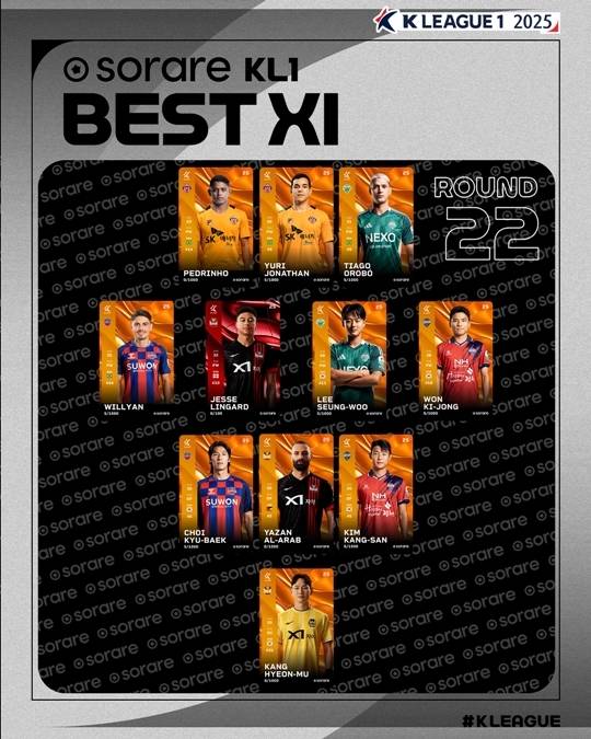 한국프로축구연맹은 7월 22일 '하나은행 K리그 2025' K리그1 22라운드, K리그2 21라운드 MVP와 베스트 일레븐을 공개했다.