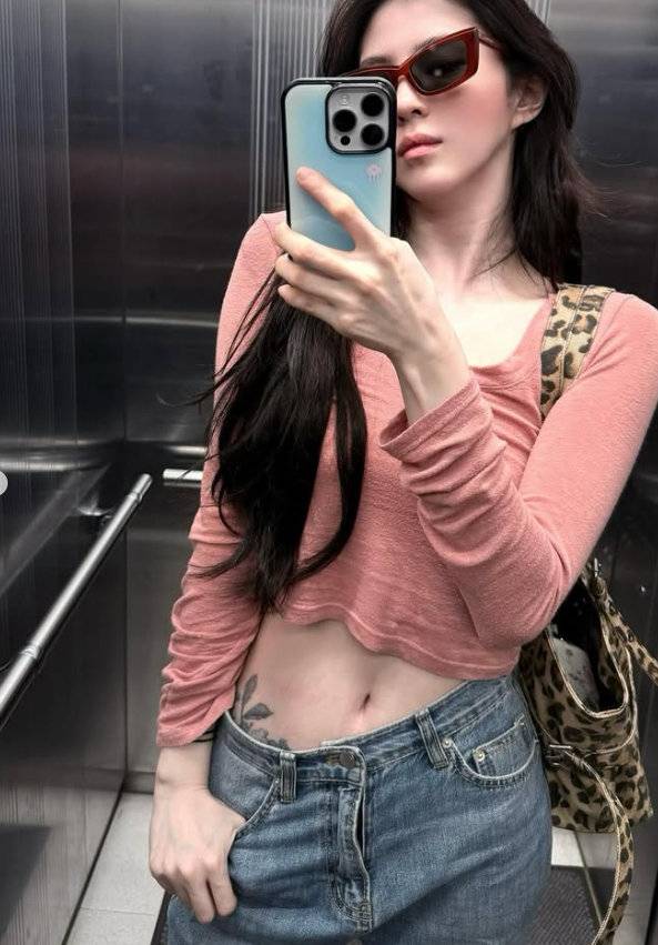 한소희는 청바지에 크롭티 차림으로 잘록한 허리라인을 드러내기도 했다.