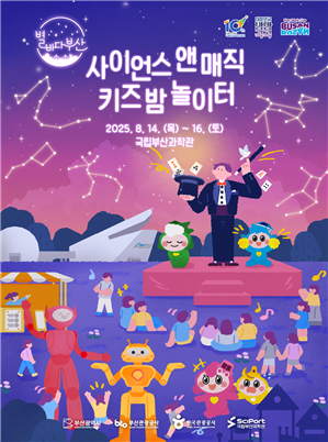 8월 14~16일에는 국립부산과학관에서 펼쳐지는 ‘사이언스 앤 매직 키즈 밤놀이터’가 준비돼 있다. 과학과 마술을 결합한 이색 체험 행사로, 오후 6시부터 9시 30분까지 과학 체험존과 매직쇼가 릴레이로 이어진다. 특히 올해는 숙박형 체험 프로그램인 ‘가족과학캠프’(3인 8만 8000원부터)도 함께 운영돼, 과학관에서 하룻밤을 보내는 특별한 경험이 가능하다.