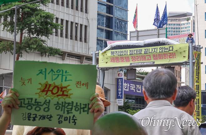 연일 계속되는 폭염 속에서 구미의 한국옵티칼 박정혜 노동자는 고용 승계를 요구하며 공장 옥상에서 562일째, 서울 세종호텔 앞 도로 교통 시설물 위에서 고진수 노동자는 정리해고 철회를 요구하며 160일째 고공농성을 이어가고 있다.