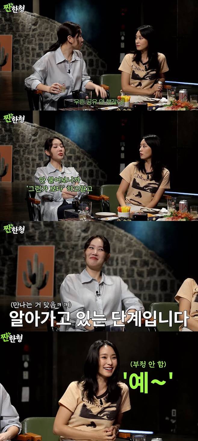 이어 "회사에서 '너 연애하니?'라고 물으면 맞으면 인정은 하지만, 누군지는 안 밝힌다. 그쪽에서 맞히면 맞다고 한다. 기사에는 '알아가고 있는 단계입니다'라고 나온다"고 밝혔다.