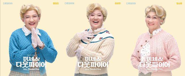 특히 극 중 다니엘과 미세스 다웃파이어의 20회 퀵체인지와 재치 넘치는 대사까지, 극적인 변신을 오가는 ‘다니엘’ 역할에는 황정민, 정성화, 정상훈이 캐스팅되어 뜨거운 주목을 받고 있다. 각기 다른 개성과 색깔을 지닌 세 배우는, 탁월한 연기력과 무대 장악력, 유쾌한 코미디 감각까지 두루 갖춘 대한민국 대표 배우들로, 웃음과 감동을 오가며 펼쳐야 하는 고난도의 캐릭터를 어떻게 소화해낼지 벌써부터 기대가 모인다.