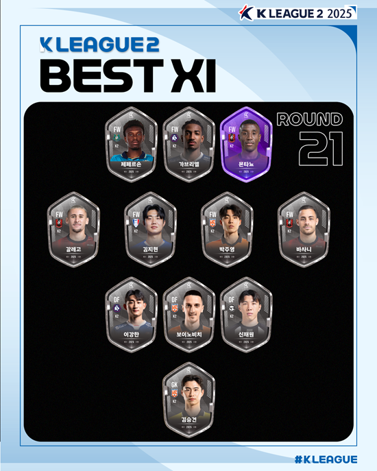 K리그2 21라운드 MVP는 부천 몬타뇨가 차지했다. 몬타뇨는 20일 부천종합운동장에서 열린 부천과 충남아산의 경기에서 해트트릭을 기록하며 부천의 5-3 승리를 이끌었다.