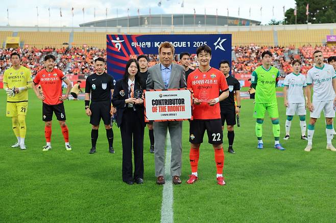 강원FC는 지난 19일 강릉하이원아레나에서 열린 대전하나시티즌과의 '하나은행 K리그1 2025 22라운드' 홈경기에서 6월의 공헌상 시상식을 진행했다.