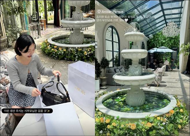 케이크에 초를 불며 가족의 건강을 소원으로 빈 레이디제인은 시부모님에게 명품백 선물까지 받았다.