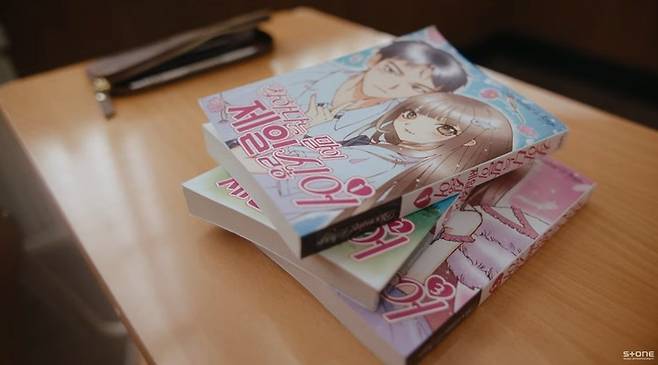 이어서 '착하다는 말이 제일 싫어'라는 제목의 만화책이 책상 위에 놓여 있고, 이도현이 그 옆에서 그림 작업을 하는 장면이 눈길을 끈다.