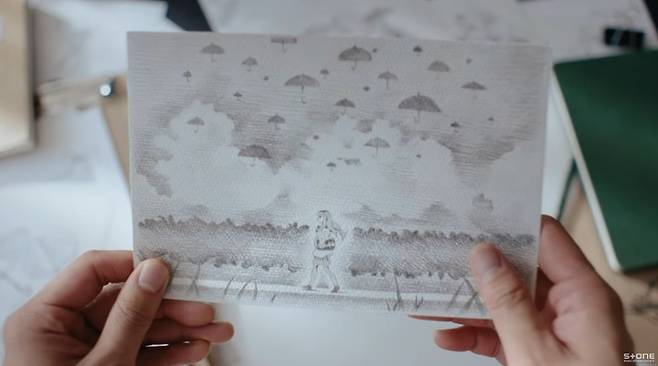 그가 그리는 만화 속에는 우산을 쓰고 홀로 서 있는 최예나, 바람을 맞으며 기분 좋게 달리는 최예나의 모습이 담겨 있어 현실과 그림이 뒤섞인 듯한 몽환적인 분위기를 자아낸다.