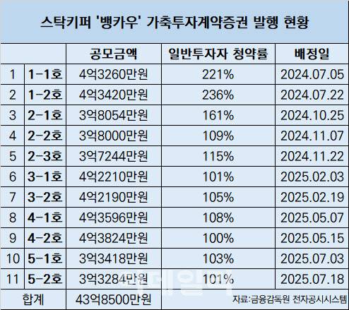 누적 공모금액 43억8500만원·평균 청약률 133%
