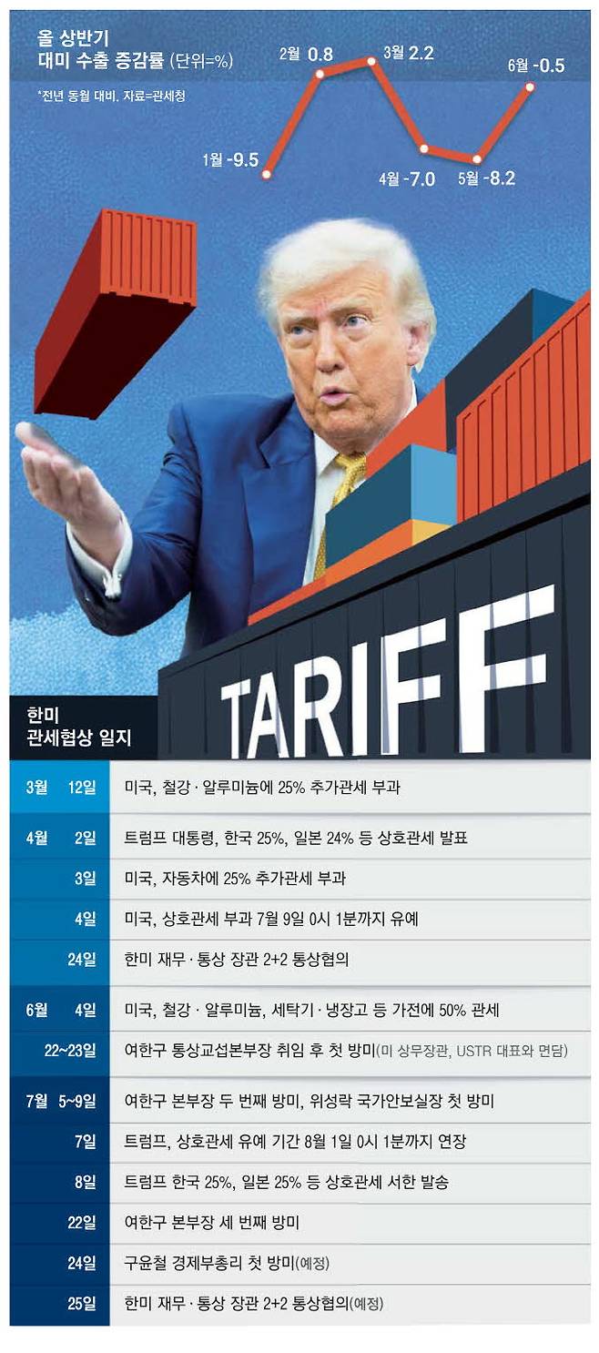 한국은 총력전에 나섰다. 이미 위성락 국가안보실장과 나경원, 이준석 등 한미의원연맹 소속 국회의원들은 미국으로 갔다. 22일 협상 실무를 진두지휘하는 여한구 산업통상자원부 통상교섭본부장이 취임 40일 만에 세 번째 미국 출장길에 올랐다.