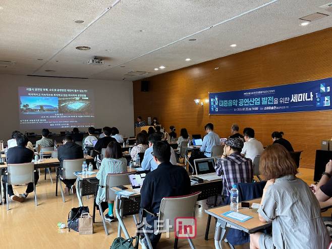 이날 세미나에서는 이재명 대통령이 대선 과정에서 공약으로 내세운 ‘5만 석 규모 대형 복합 아레나형 공연장 조성’과 ‘국내외 K팝 꿈나무를 위한 중·소형 공연장 조성’에 관한 내용도 관심 있게 다뤄졌다.