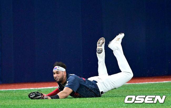 2회말 무사 1, 2루 상황 키움 권혁빈의 뜬공 타구를 롯데 좌익수 레이예스가 몸을 날려 잡아내고 있다. 2025.07.22 / dreamer@osen.co.kr