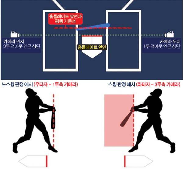 체크스윙 비디오 판독은 올 시즌 2군 경기에서 일찌감치 도입돼 시범 운영됐다. 체크스윙 판정은 KBO 카메라에 타자가 공을 칠 의도로 방망이를 휘둘러 방망이 끝이 홈플레이트 앞면과 평행을 이루는 기준선을 넘으면 스윙 스트라이크가 된다. 번트 시도는 체크 스윙 비디오 판독 대상이 아니다.