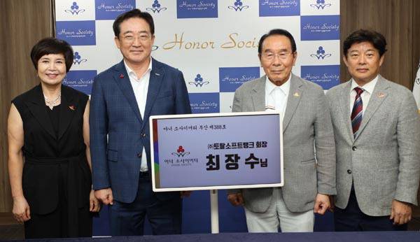 아너 소사이어티는 사랑의열매가 운영하는 1억 원 이상 고액기부자 모임이다. 최 회장은 1억 원의 성금을 기부하며 부산 388번째 아너 소사이어티 회원이 됐다. 또 최 회장의 아너 가입과 함께 ㈜토탈소프트뱅크도 1억 원의 성금 기부를 약속해 부산에서는 최초로 아너 소사이어티와 나눔명문기업이 동시에 가입하게 된다.
