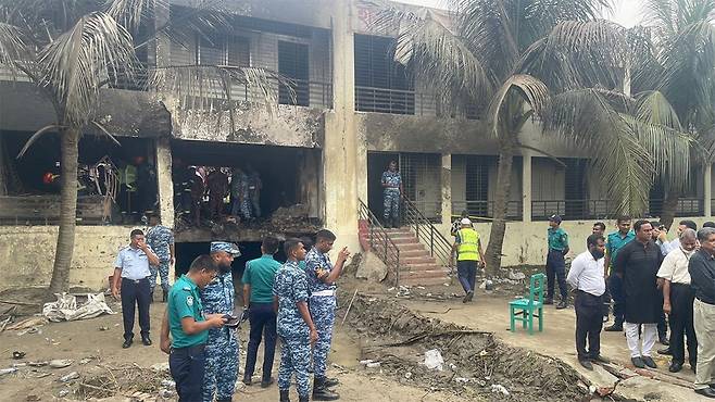앞서 전날 오후 방글라데시 공군 소속 F-7 BGI 훈련기가 수도 다카 북쪽 우타라 지역의 '마일스톤 스쿨 앤드 칼리지' 초중고등학교 캠퍼스에 추락했습니다.