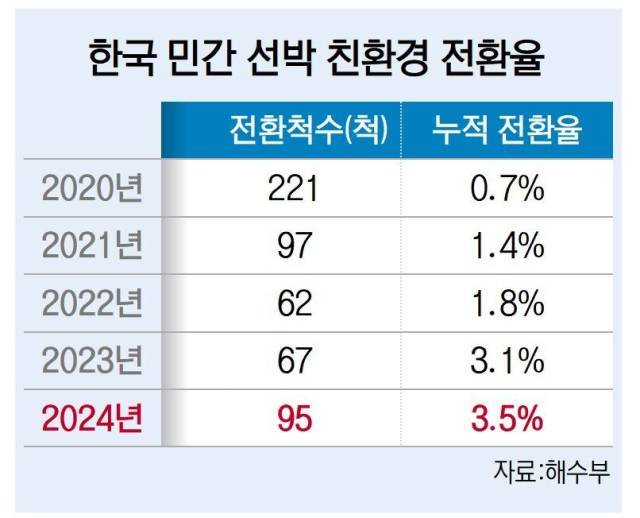특히 국내 해운조선 산업 현재를 보면 해수부의 역할 강화는 더 필요해 보인다. 해수부에 따르면 기존 중유·경유 이외의 연료로 움직이는 친환경 선박 전환율이 지난해 기준 3.5% 수준에 그치고 있다. 관련 산업이 앞으로 갈 길이 멀다는 의미다.