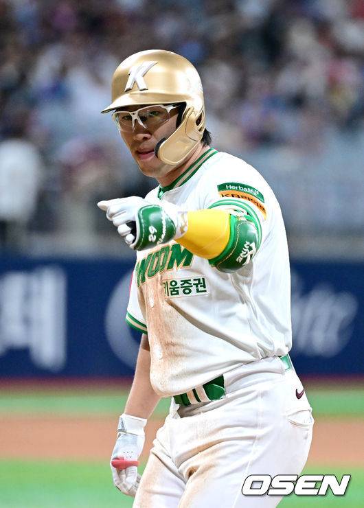 5회말 1사 주자없는 상황 키움 임지열이 안타를 날리고 1루에 안착해 기뻐하고 있다. 2025.07.22 / dreamer@osen.co.kr