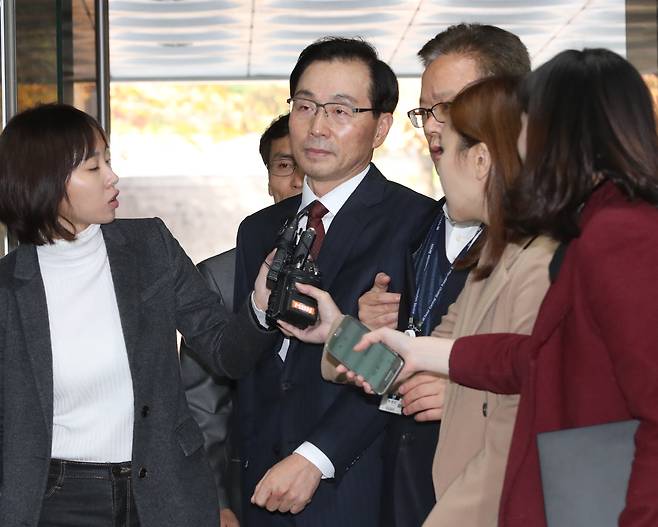 | ▲ 2017년 11월 6일, 국가정보원 '댓글 사건' 수사와 재판 방해공작 주도혐의를 받는 서천호 전 국정원 2차장이 영장실질심사를 받기 위해 6일 오후 서울중앙지법에 출석해 취재진의 질문을 받고 있다. |