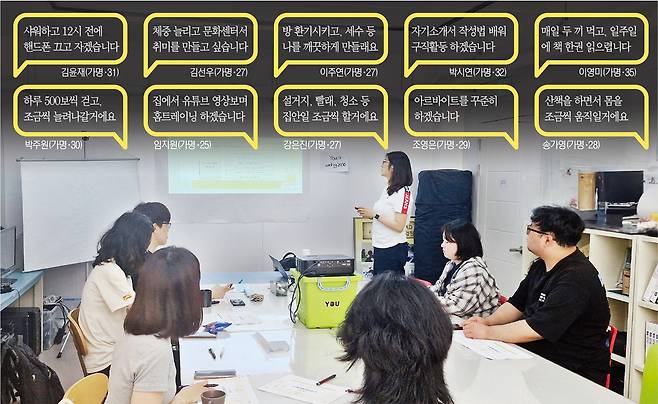 앞서 참여 청년들은 서로를 알아가는 기회를 가지며 3주에 걸쳐 유대감을 쌓아왔다. 그동안 어떻게 살아왔는가를 되짚어보고, 프로그램 참여 동기, 실천이 어려운 이유, 시도해본 목표 등을 서로 공유하며 관계를 형성했다. 다른 사람과 인사하는 것조차 힘들어했던 청년인 점을 고려해 게임을 통해 자연스럽게 서로를 인식할 수 있도록 했다. 또 강사의 지도에 따라 구체적이고 실현 가능한 목표를 세우는 실습도 거쳤다.