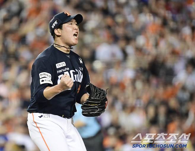 22일 잠실야구장에서 열린 KBO리그 두산과 한화의 경기. 7회를 삼자범퇴로 처리하고 주먹을 쥐어보이는 한화 박상원. 잠실=송정헌 기자songs@sportschosun.com/2025.07.22/
