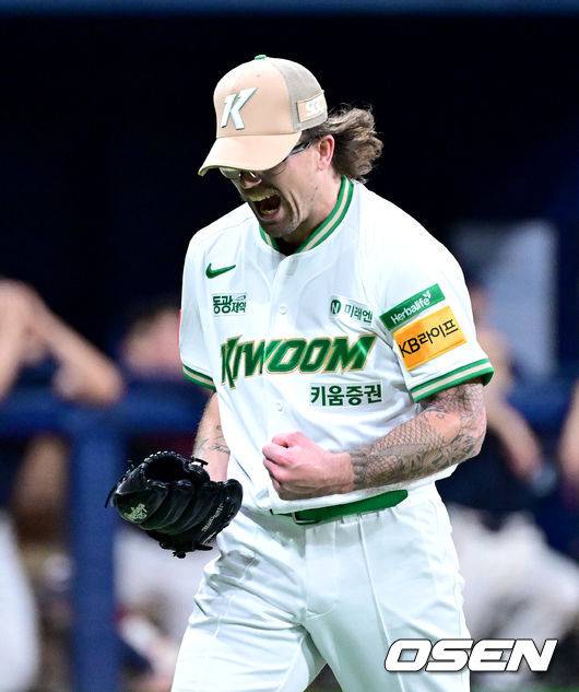 포효하는 키움 선발 라클란 웰스, '고별전에서 106구 6이닝 3실점 역투' [사진]