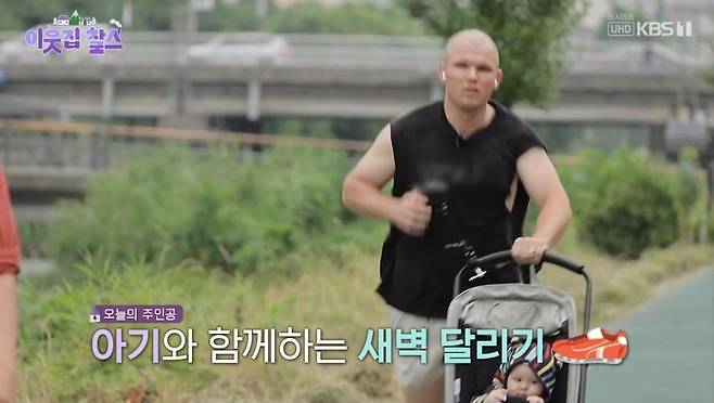 이날 서울 은평구 증산동에는 생후 6개월 아기와 새벽 조깅을 하는 영국에서 다니엘(34세)의 모습이 포착했다.