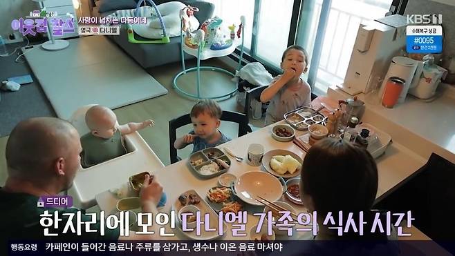 다니엘의 아내 역시 아이 셋 육아에 모유 수유까지 쉴틈이 없었다. 아내는 된장찌개에 소고기를 구워 한 상을 차렸다. 다니엘은 아내에게 고기 쌈을 먹여주며 결혼 8년 차에도 달달한 모습을 보였다.