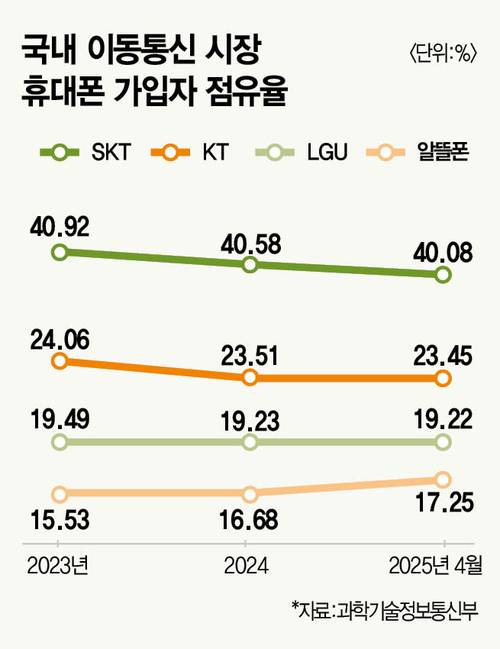 하나증권은 2025년 SK텔레콤 연간 영업이익이 5000억원가량 감소할 것으로 봤다. ▲요금 할인·데이터 무료 제공 확대에 따른 이동전화 매출액 감소분 ▲유심 교체 관련 비용 ▲가입자 모집 정지에 따른 마케팅 비용 감소 △멤버십 제휴 할인 영향 ▲위약금 면제금 ▲과징금 등을 모두 고려한 추정치다. 올해 영업이익 1조원 선을 방어할지에 관해서는 시각이 갈린다. 현재 시장에서는 1조원 초반 영업이익을 사수할 것이란 시각이 우세하다.