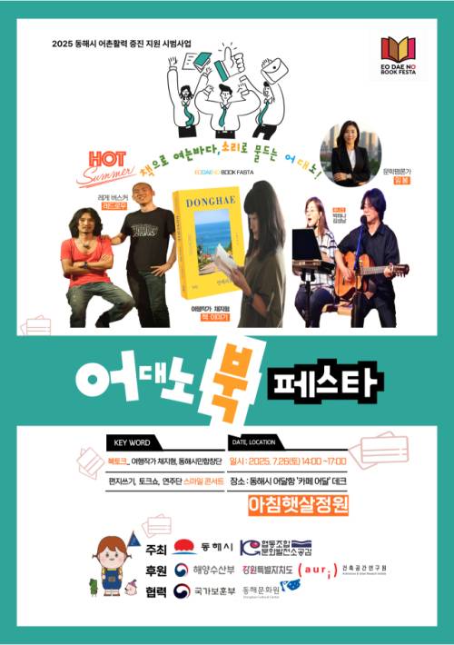 2025년 7월 어대노(어달, 대진, 노봉) 북 페스타 ‘책으로 여는 바다, 소리로 물드는 어대노’가 오는 26일 동해시 어달항 아침햇살 정원 일원에서 개최된다.