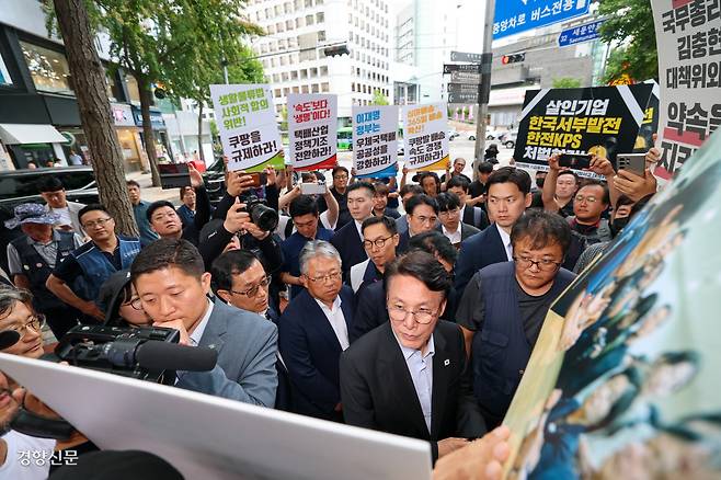 민주노총 앞에서 항의받는 김민석 총리[포토뉴스]