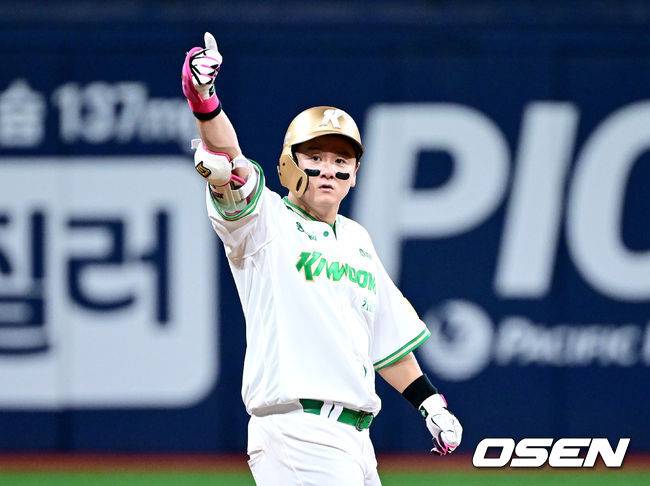 7회말 1사 1, 2루 상황 키움 최주환이 달아나는 우중간 2타점 2루타를 날리고 2루에 안착해 기뻐하고 있다. 2025.07.22 / dreamer@osen.co.kr