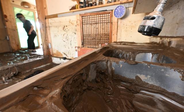산청군 산청읍 부리마을에는 산사태로 토사와 바위가 밀려들어 집이 훼손되고 사망자가 발생했다. 이경주(58)씨의 집에는 호우 당시 빗물이 허리까지 차올라 1층 전부가 침수됐다. 호우가 끝나고 물은 빠졌지만 집 안과 바깥에는 여전히 흙더미와 자갈이 가득하다. 마룻바닥에는 흙이 말라붙었고 집기도 흙탕물로 오염된 상황이다. 부리마을의 다른 주민들 사정도 다르지 않다. 물을 뿌려 남은 흙을 씻어내야 하지만 마을 전체에 이어지는 단수로 인해 청소는 고사하고 씻지도 못하고 있다.
