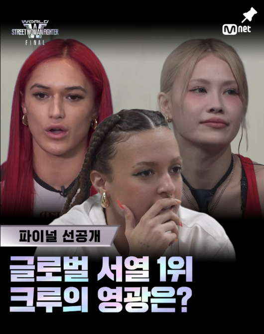 오늘(22일, 화) 밤 10시 생방송으로 진행되는 Mnet '월드 오브 스트릿 우먼 파이터'(연출 권영찬 CP, 최정남 PD / 이하 '월드 오브 스우파(WSWF)') 대망의 파이널에서는 에이지 스쿼드(AG SQUAD), 모티브(MOTIV), 오사카 오죠 갱(OSAKA Ojo Gang) 3크루가 최종 우승을 두고 마지막 춤 싸움을 펼칠 예정이다.