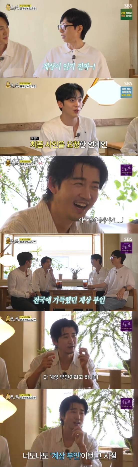 22일 방송된 SBS 예능 프로그램 '틈만나면'에서는 '틈 친구'로 윤계상, 김요한이 출연해 송파구 일대를 누비며 '틈 주인'과 만나 특별한 시간을 가졌다.