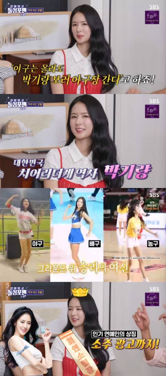이날 방송에서 이상민은 박기량에게 "치어리더계 새 역사를 썼다. 야구, 배구, 농구 등 모든 스포츠를 꽉 잡고 있다"면서 "21살에 최연소 팀장, 치어리더 최초로 인기 연예인들만 찍는다는 소주 광고도 찍었다. 부산의 딸이었다"고 했다.