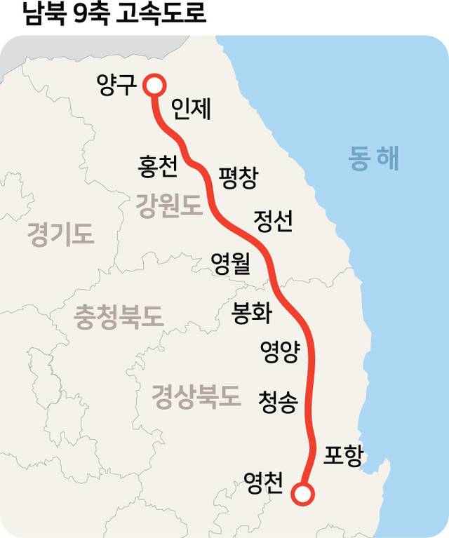 강원~경북을 연결하는 남북 9축 고속도로는 강원도가 올 하반기 발표가 예상되는 제3차 고속도로 건설계획에 반영을 노리는 최우선 과제로, 지역소멸 위기에 처한 지역을 관통한다는 점에서 정책적 필요성이 크게 주목 받는다.
