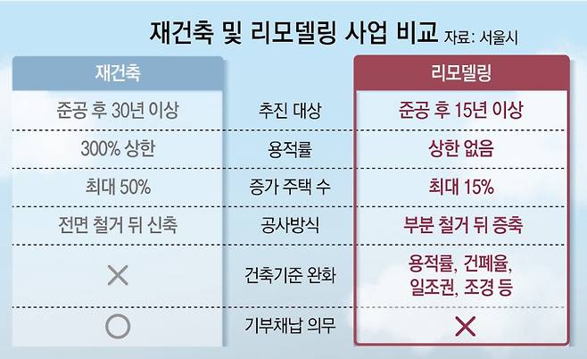 하지만 무리한 추진을 제어할 법적 근거는 불분명하다. 재건축, 재개발 등 정비사업이 각종 심의를 통과해야 추진할 수 있는 것과 대조적이다. 김지엽 성균관대 건축학과 교수는 “리모델링 사업도 경관 독식을 막고 담장 철거 등 열린 단지를 조성해 인근 주민과 조화를 추구하도록 해야 한다”고 조언했다.