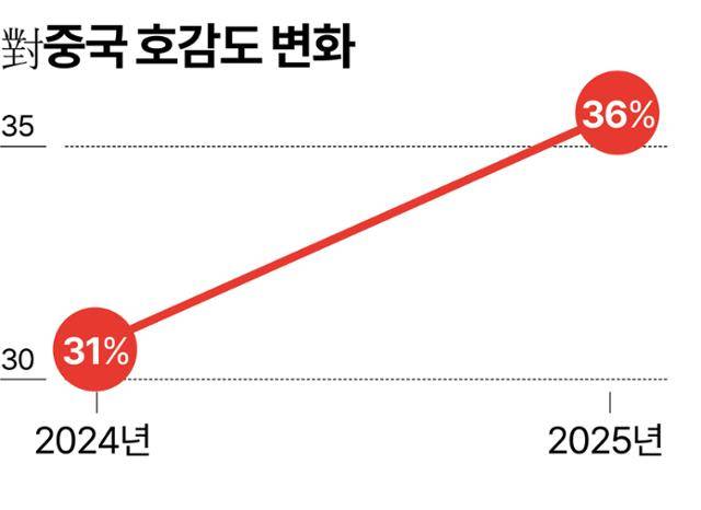 2025년 이후 중국에 대한 주요국 시민들의 호감도가 소폭 높아진 것으로 나타났다.
