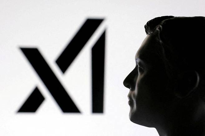 [일론 머스크의 3D 미니어처 모델과 xAI 로고 (로이터=연합뉴스 자료사진)]