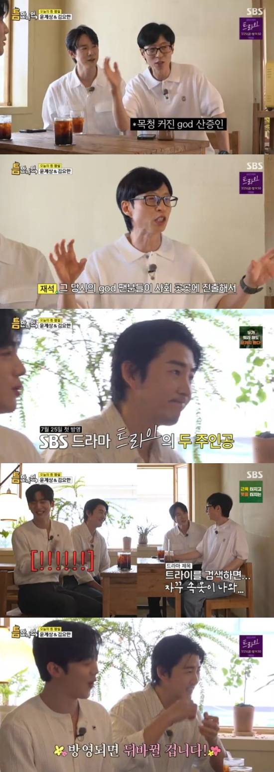 '틈만나면'에서 유재석이 국민 그룹으로 불렸던 god의 인기를 언급하며 흥분을 감추지 못했다.