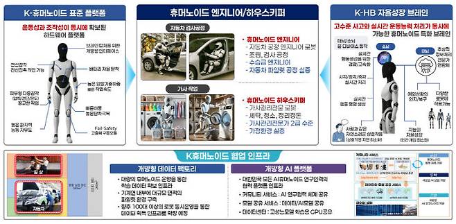 연구단은 인간 수중 이상의 신체 능력과 범용의 작업 지능을 갖춘 K-AI휴머노이드 개발을 목표로 한다. 운동성과 작업성이 동시에 구현된 휴머노이드 플랫폼을 개발하고 대뇌와 소뇌로 구성된 고수준의 사고와 실시간의 운동능력 구현이 가능한 AI기술을 개발, 탑재할 계획이다.