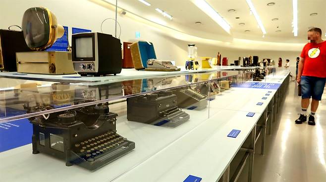 TV나 라디오의 경우는 일부 작동이 가능한 것은 실제 작동되고 있는 상태를 관람할 수 있었다면 관람자들의 더 많은 관심이 쏟아졌을 것 같다. 그렇다고 눈으로 보기만 하는 전시는 아니었다. 관람객을 위해 두 벌식 한글 타자기 한 대가 체험용으로 마련이 되어있었다.